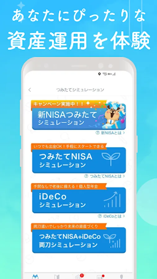 Make your life a little richer by having fun and learning about the currently popular Savings NISA (Reserves NISA) and iDeCo, asset management simulations for the new NISA that will start next year, and the knowledge you need to know before you start investing in stock games. You might be able to do it! ? Try out the asset management simulation/simple investment game now!