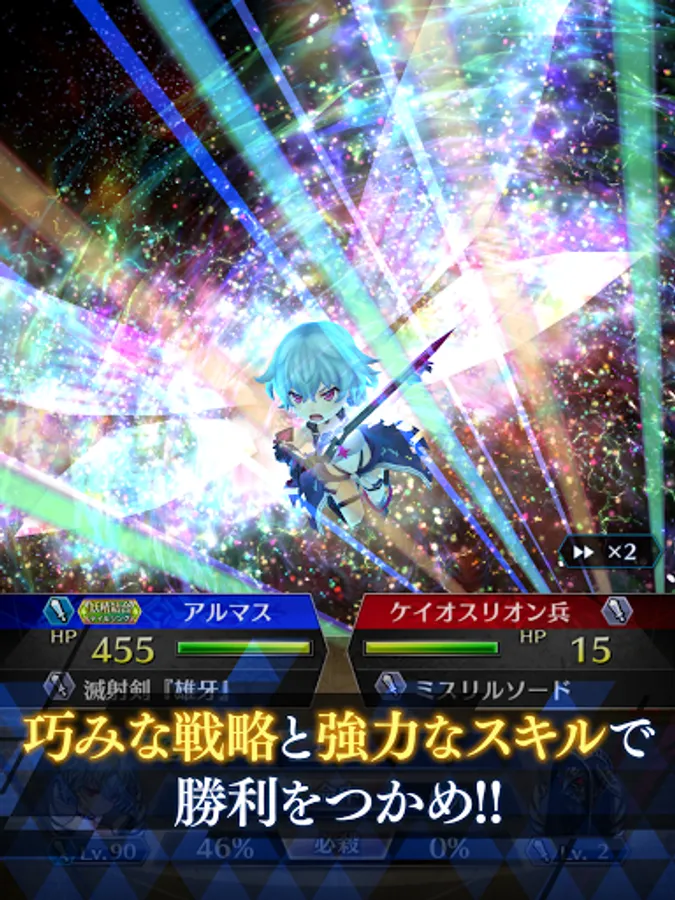 "The girl waits, your god's move" "strategic x drama" simulation RPG. Even with the same unit, the parameters change depending on the player's training! Unit x job x skill x formation is the key! Dominate the battlefield with your own team and tactics!