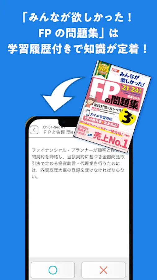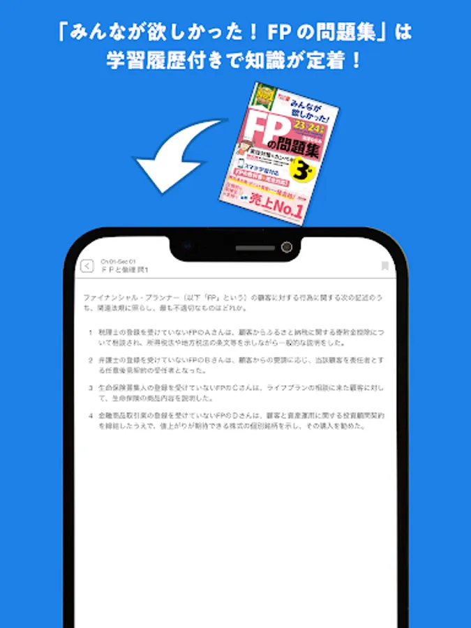 In this application, the number one sales book as a book for FP exam preparation "Everyone wanted! FP textbook 3rd grade", "Everyone wanted! FP problem collection 3rd grade" (TAC Publishing) "Department ” contains past question-based questions!