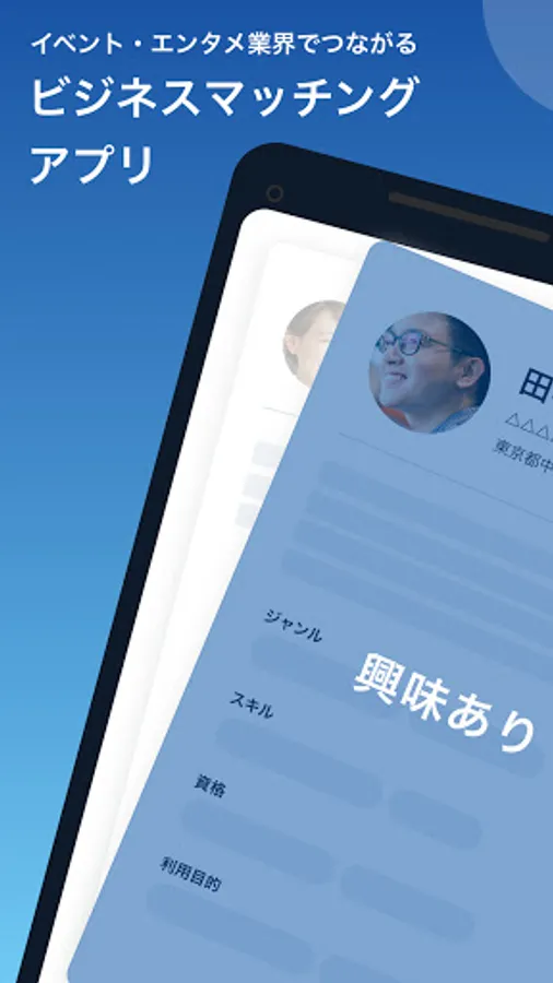 Personnel involved in the event / entertainment industry or its peripheral industries are registered. With recommendations that arrive at 9 am every day, you can meet people of all skill positions regardless of job type or industry. Matching is established with mutual "interest". Exchange messages and build a new network.