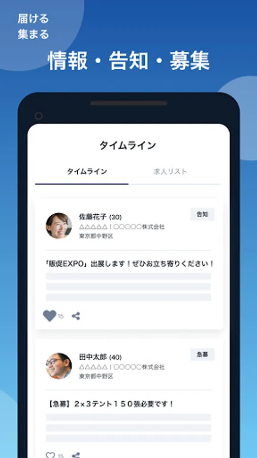 [Delivery / gathering "information" "announcement" "recruitment"]