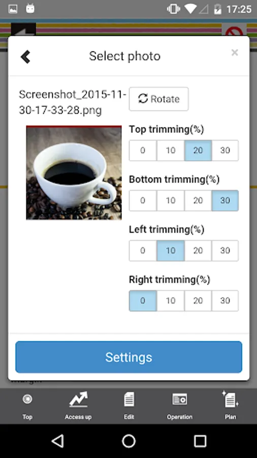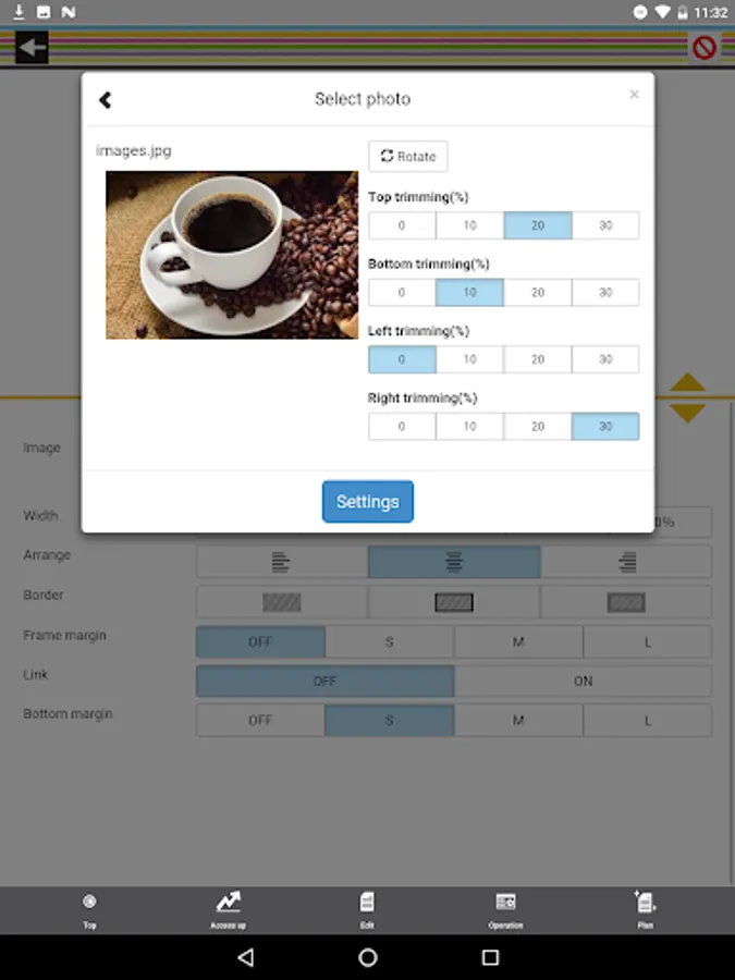 Trimming (cutting) and rotation can be done after selecting a photo.