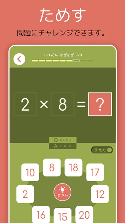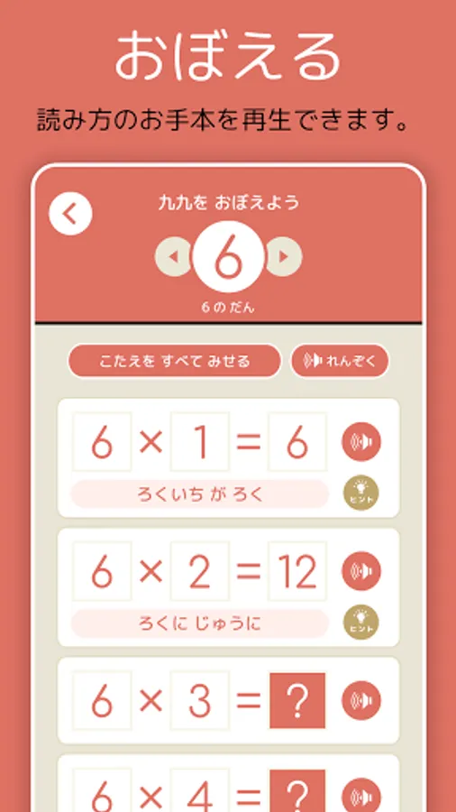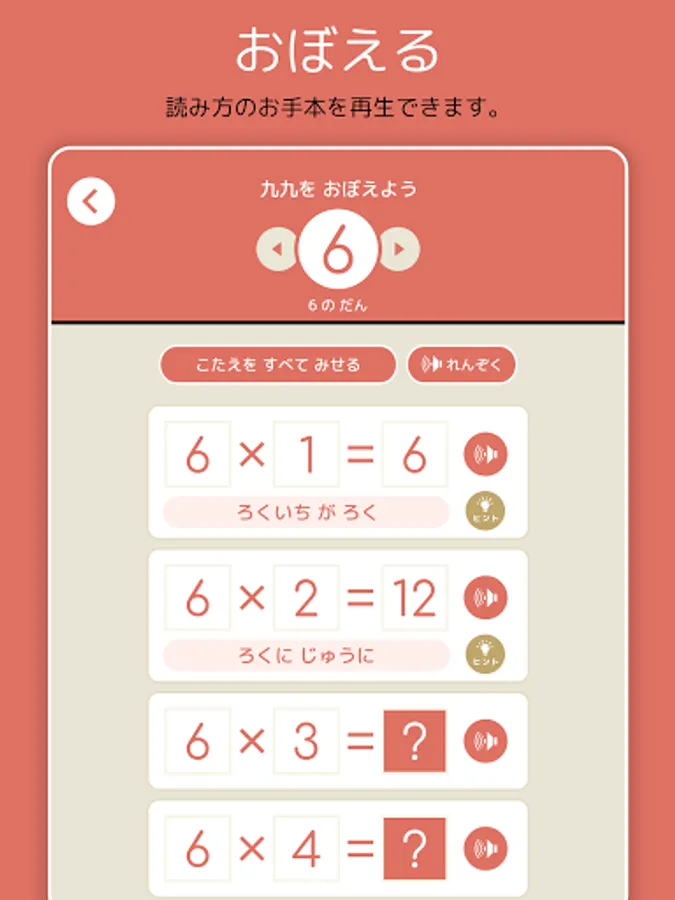 You can listen to examples of how to read multiplication tables and challenge various problems.