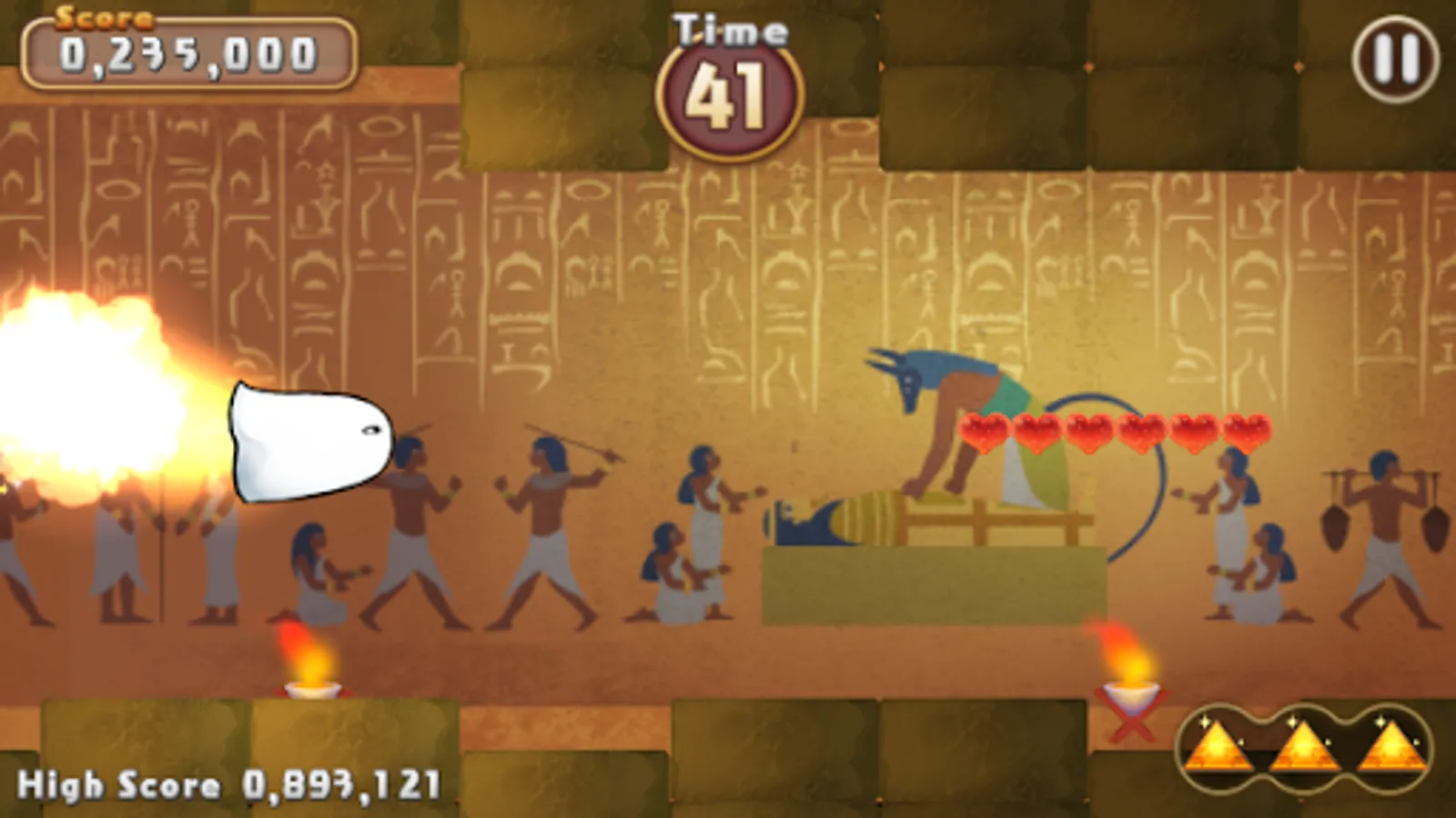 Control the mysterious god Medjed and try to make it to the end of the pyramid