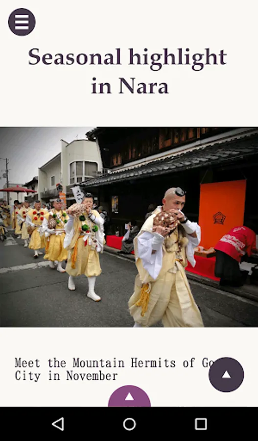 Japan’s ancient capital, Nara, breathes with over 1300 years of history. From the north to the south of the prefecture, festivals and events celebrating its long history take place throughout the year, and the land flourishes with a wealth of seasonal foods. With 72 Seasons Nara you can learn more of this bountiful place, and tune your travels to the seasons. The main page updates approximately every five days, bringing you information for your trip. The “Seasonal Adventure” section gives suggestions for your travels for each of the main seasons - spring summer, autumn and winter.