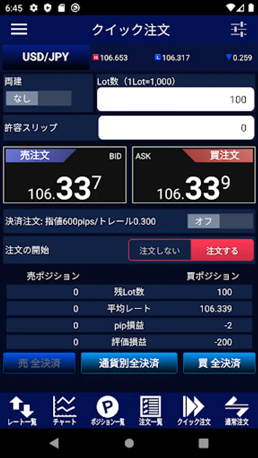 You can place an order with one tap (both houses are possible). Equipped with "Payment pip difference order" that allows you to place a profit / loss cut within a specified price range at the same time as a new order. Orders can also be placed from the chart screen, so you can speedily trade without missing the timing.