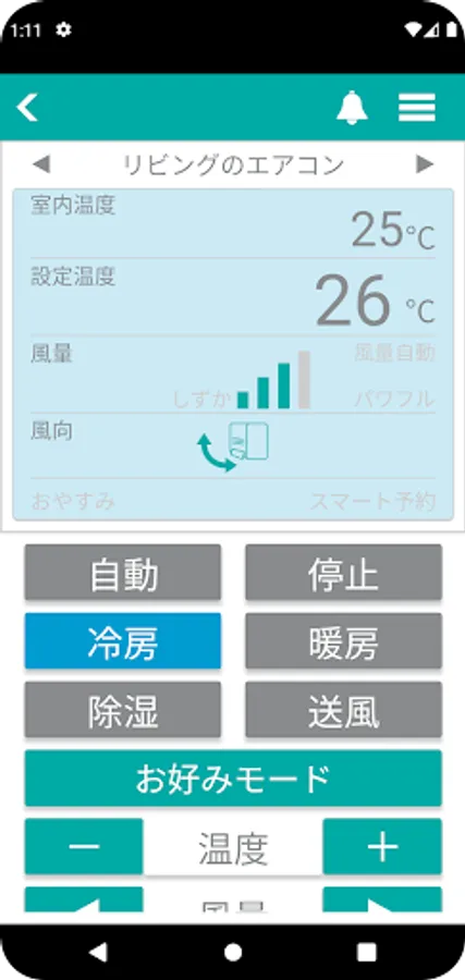 You can change to various operation modes (automatic, cooling, heating, dehumidification, ventilation).