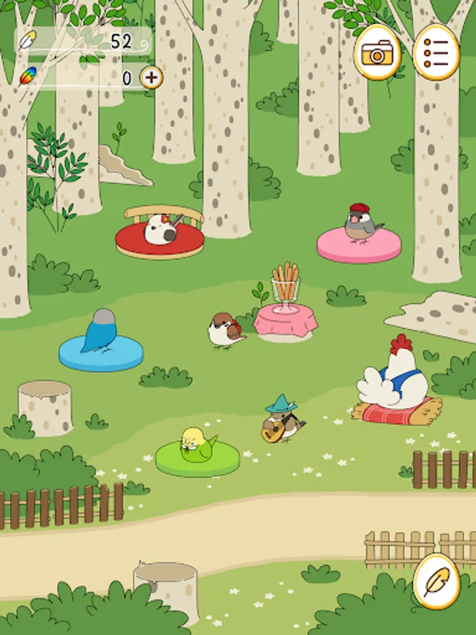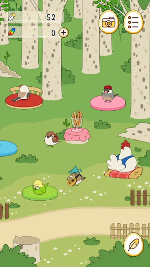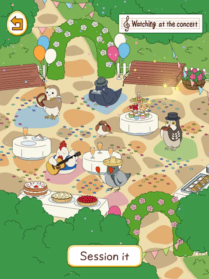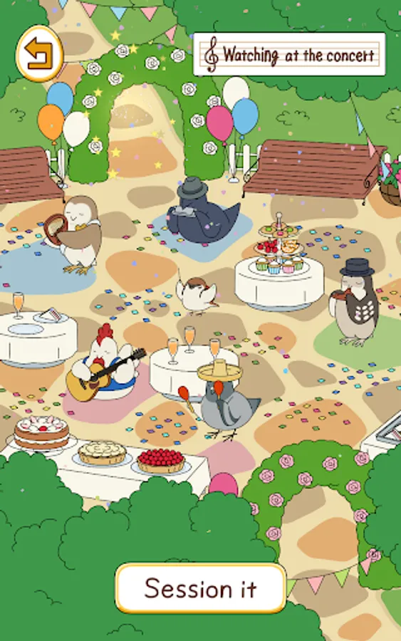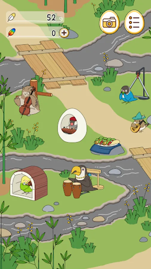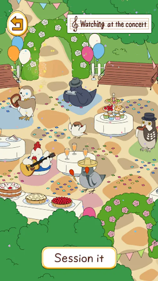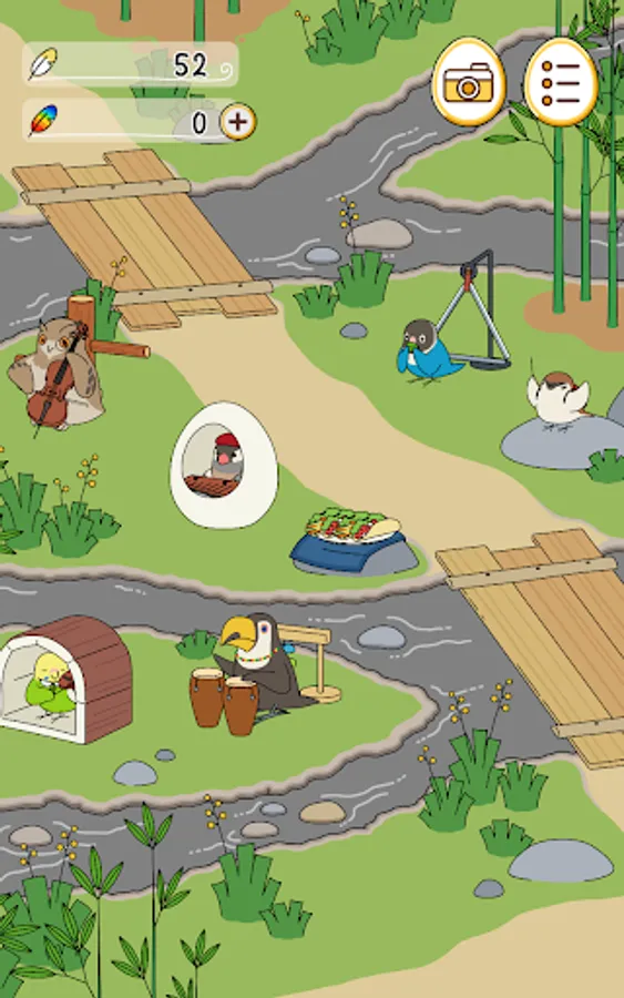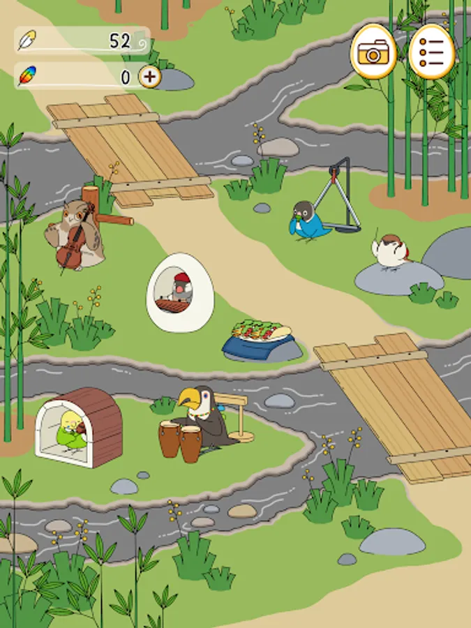 Birds that come to play in the square spend their time freely, relaxing with goods and playing their favorite instruments.