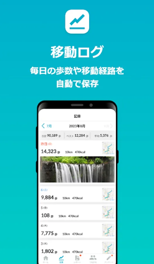Automatically records and visualizes the number of steps you take per day, the route you take, and the places you stay. You can link photos to your route, leave notes, and use it like a diary.