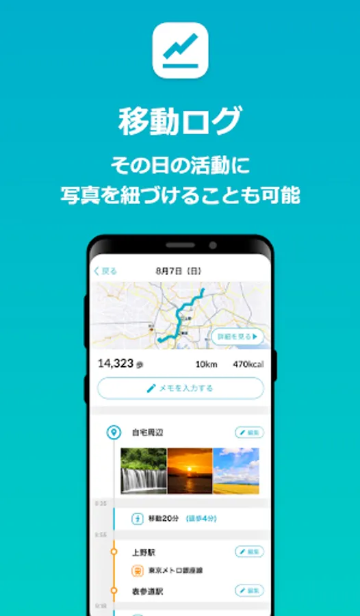 ⇒You can record the photos and memos you took along with your movement history. Let's keep a record of your outings, such as hobbies, community gatherings, and participation in volunteer activities!