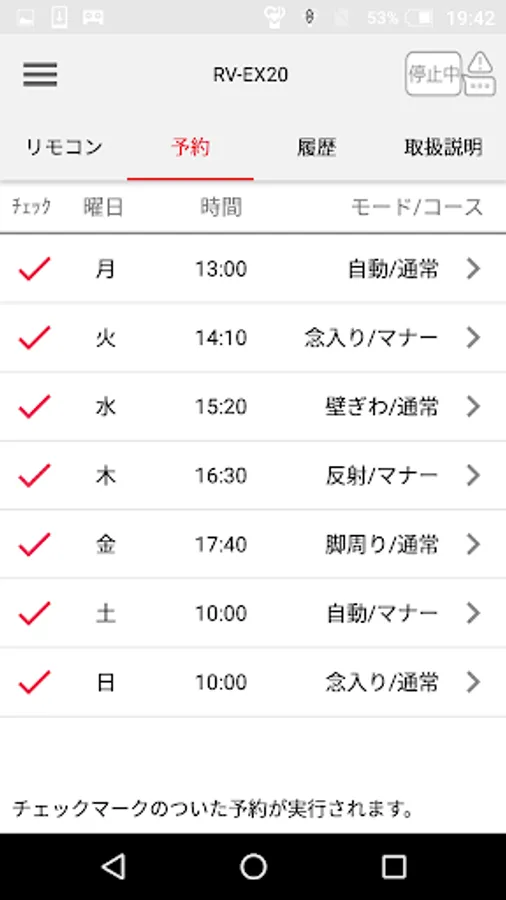 You can set the start time, cleaning mode, and cleaning course for cleaning once a day from Monday to Sunday.