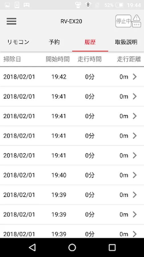 Displays the running time and mileage of the last 30 times. If you select the history from the displayed list, you can check the cleaning mode, cleaning course, and notification display.