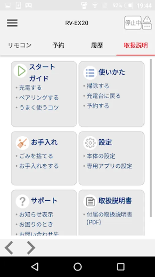If the minimal unit and the smartphone are connected to the same wireless LAN router, you can perform manual operations such as moving forward, rotating left and right, and returning a little.