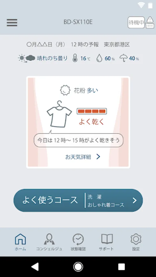 Based on the laundry index of the day, we advise you on the time when the laundry is easy to dry, and if it is difficult to dry, we recommend you to dry the room or drive until it dries. You can also check weather information and pollen information.