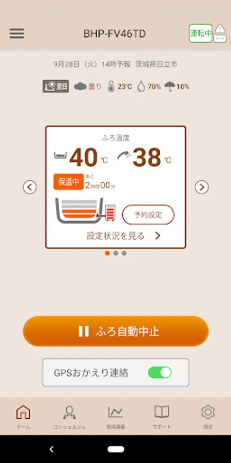 When you enter the preset distance, you will receive a push notification on your smartphone, and you can set the hot water filling from outside.