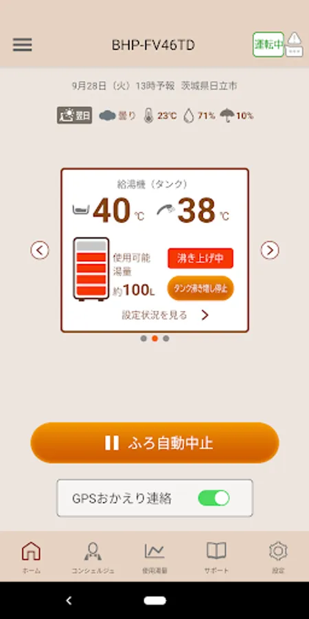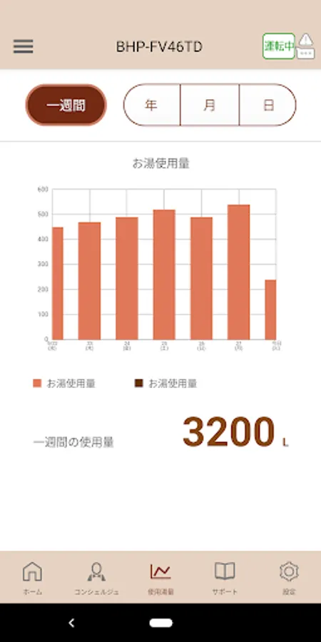 Information such as the current amount of hot water in the tank and the amount of hot water used in the past can be accessed from your smartphone at any time.