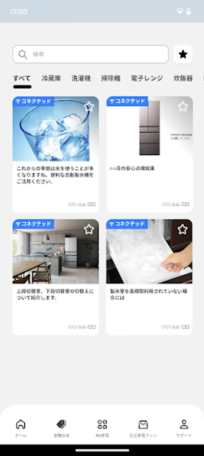By registering the Hitachi home appliances you are using in My Home Appliances, you can manage them in a list, and you can immediately check the instruction manuals and how-to videos on your smartphone.