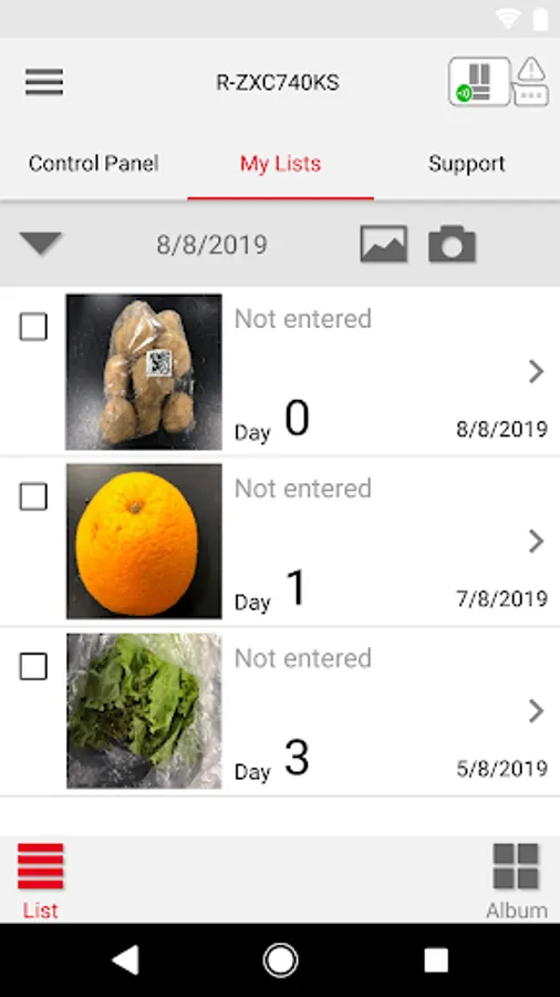 List the stored food by taking photos with a smartphone, Notify you by recording the date of purchase and the number of days passed, and expired date.