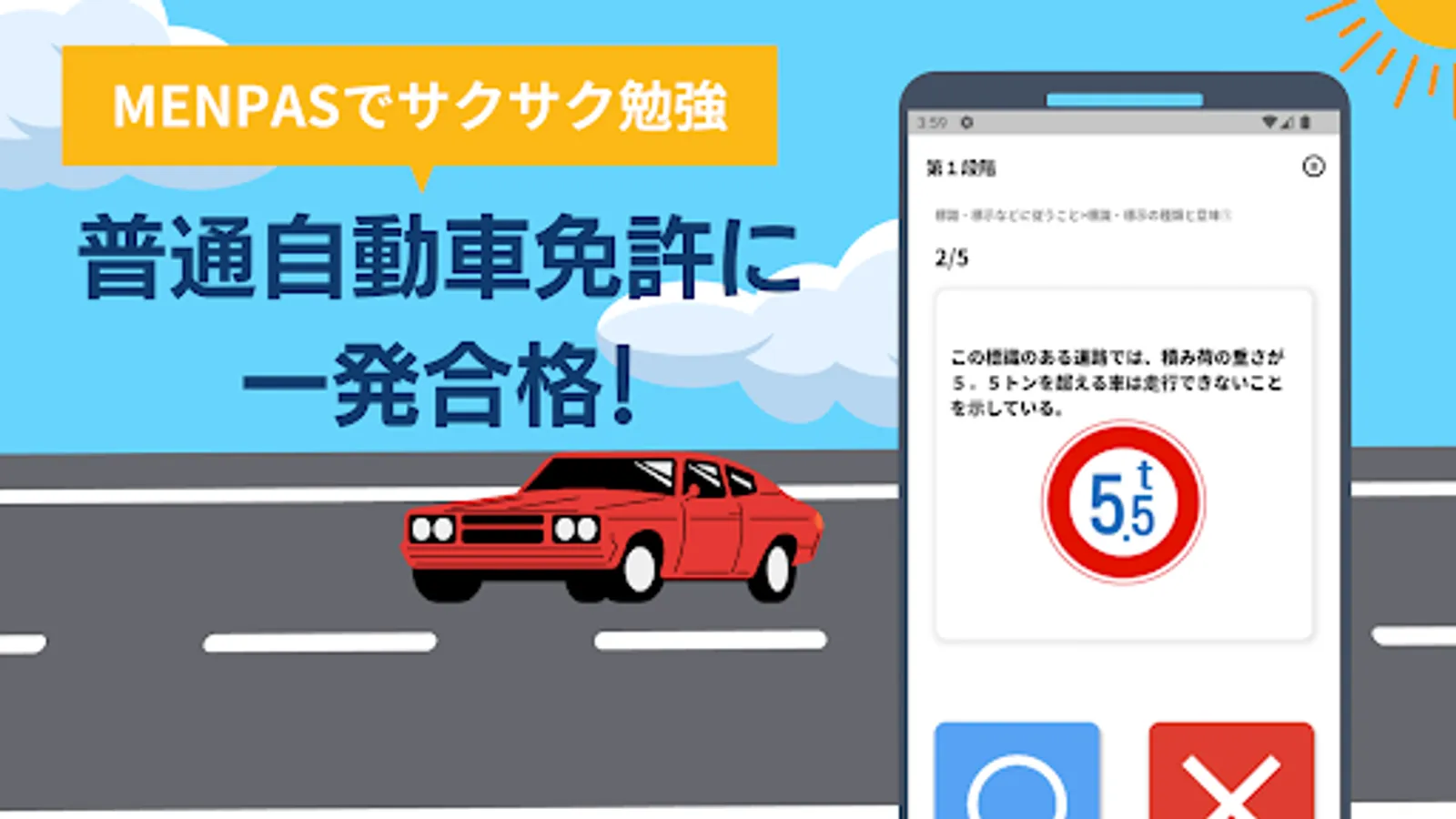 By using this app, you can efficiently learn the knowledge necessary for the written test of a normal driver's license and face the license acquisition with confidence. Take advantage of this app and drive freely to any place you like!