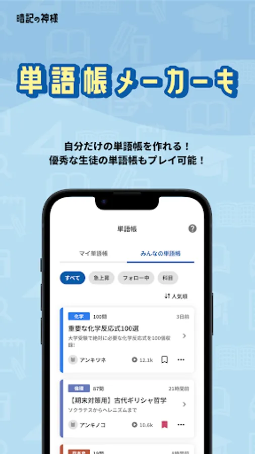 ・God of Memorization is a study app for junior high school students, high school students, and working adults.