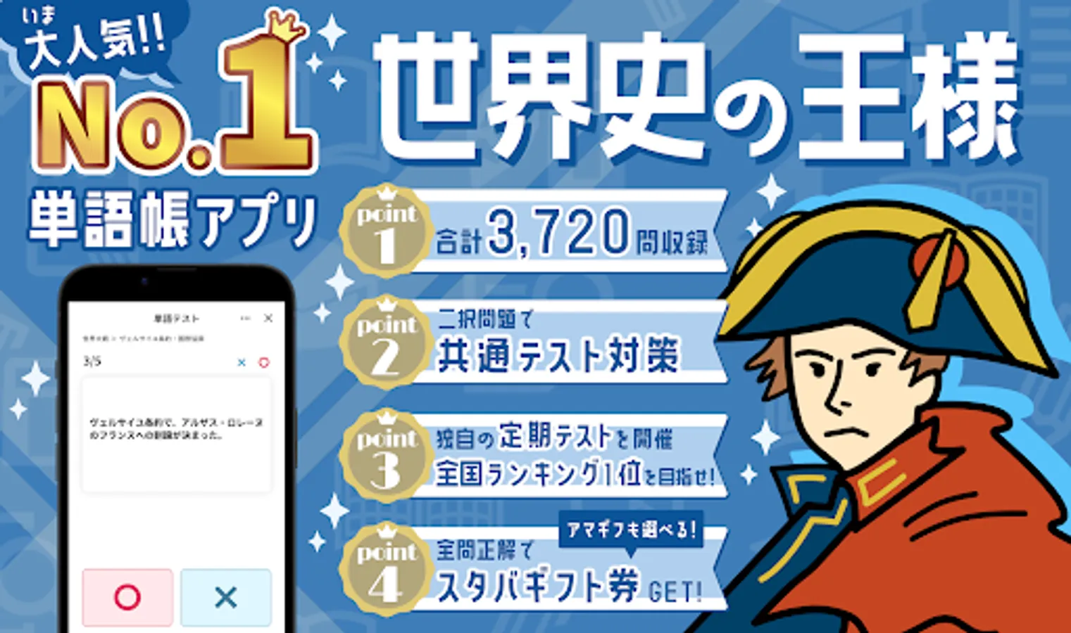 ・ Those who want to start learning World History A and World History B on their smartphones right now