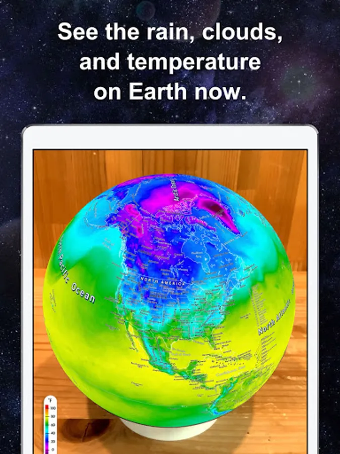 When you view the Hobonichi Globe through the app, you can view real-time changes in the Earth's clouds, rain, and temperature by the hour.