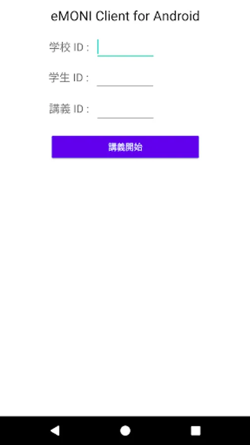 Register the "School I D", "Student I D", and "Lecture I D" entered in the administrator master database with the eMONI client, and register the corresponding school name, student name, and lecture name.