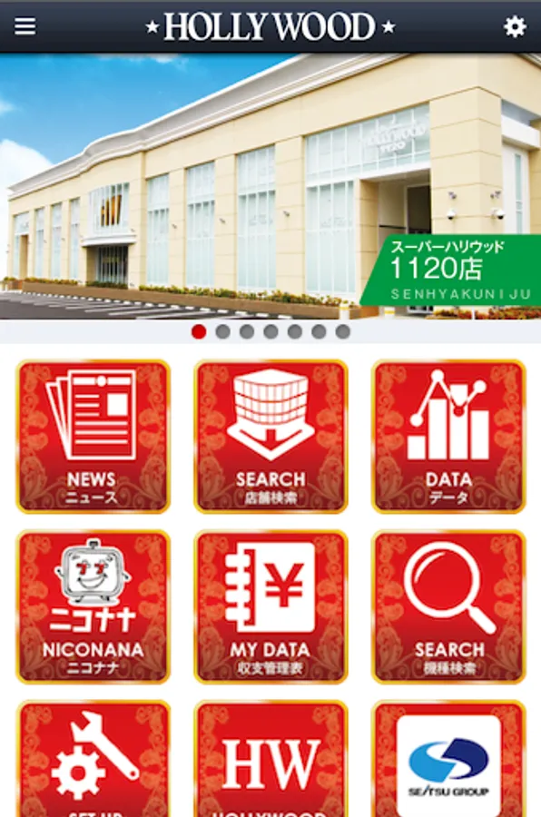 福岡県のスーパーハリウッド1120を始め、中四国、大阪、関東圏でアミューズメントホールを展開する「ハリウッドチェーン・成通グループ」の公式アプリです。