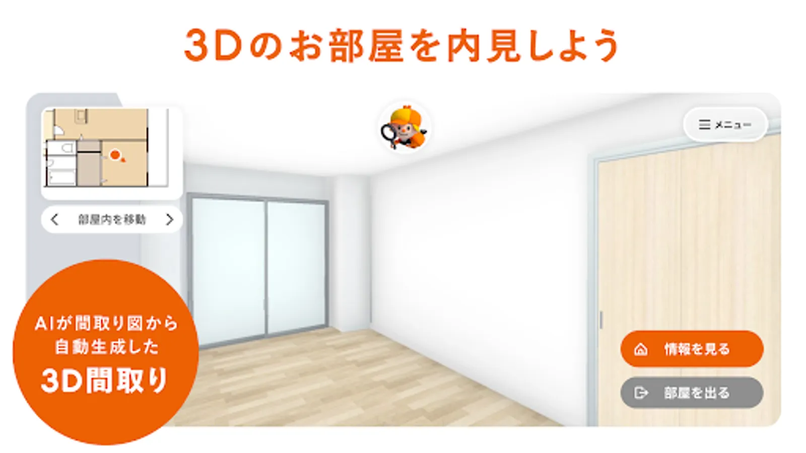 Not only the city but also the rooms are in 3D. You can move around the property and take a look at it as if you were in the room.