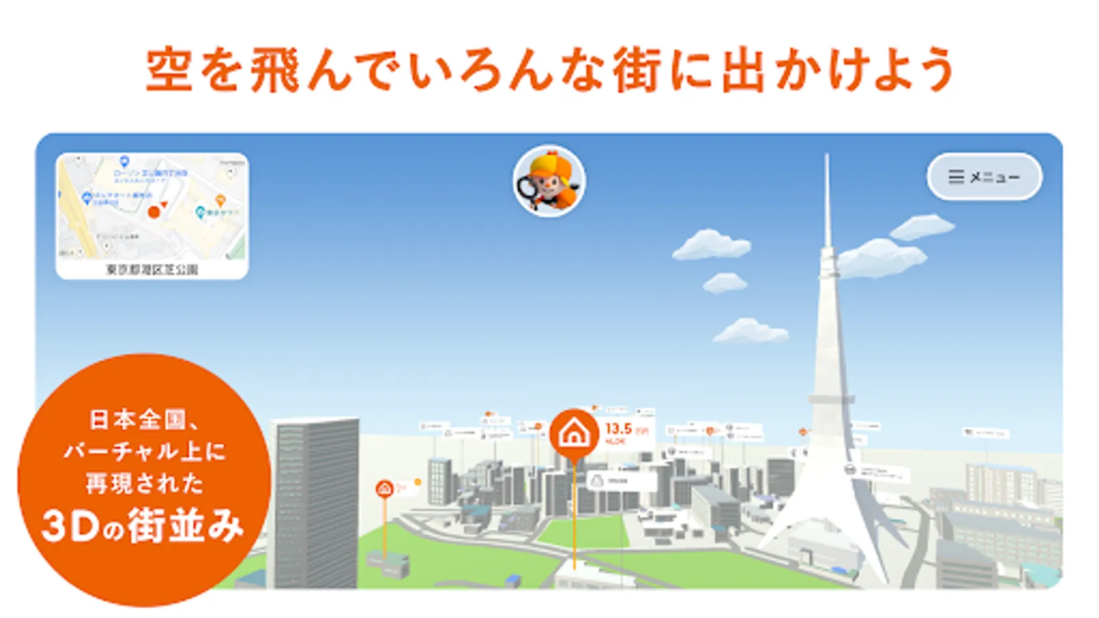 You can freely fly around your property or the area you want to live in and search for a place to live while watching the city.