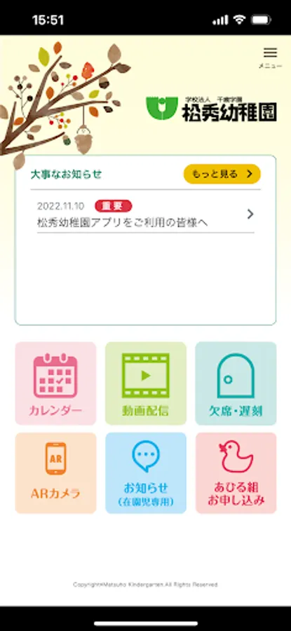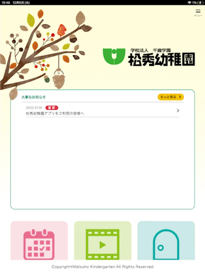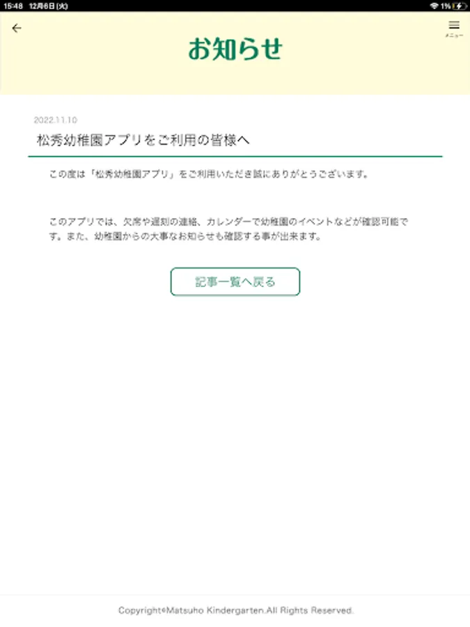 Absences and tardiness notifications, kindergarten events on the calendar, etc. can be confirmed. You can also check important notices from the kindergarten.