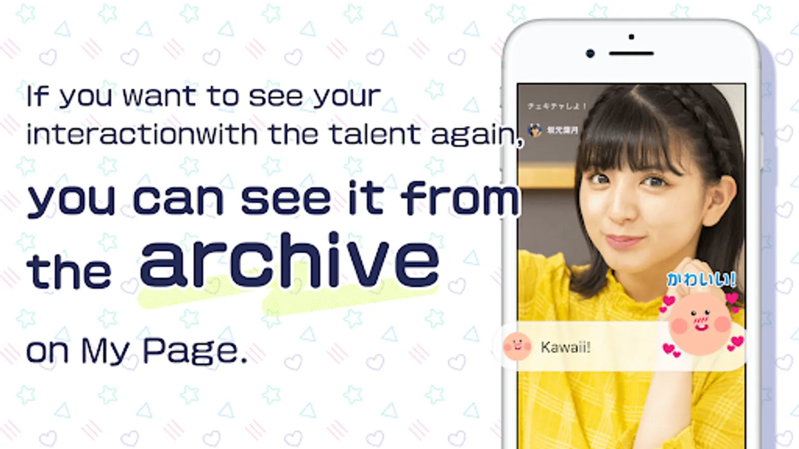 Users basically use only text chat, but depending on the schedule of the talent, you can enjoy video and audio conversations. It's an app that allows you to monopolize personal time with your favorite talent.