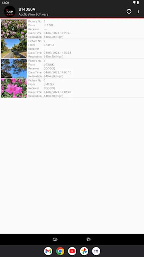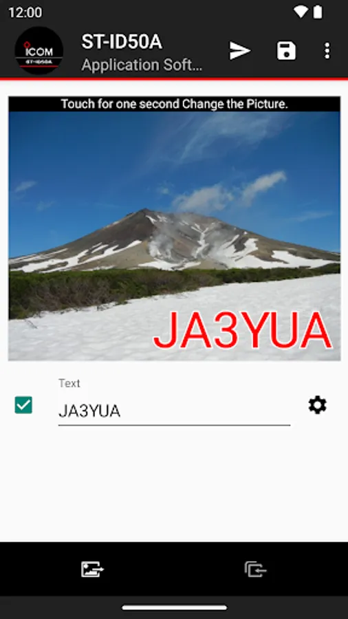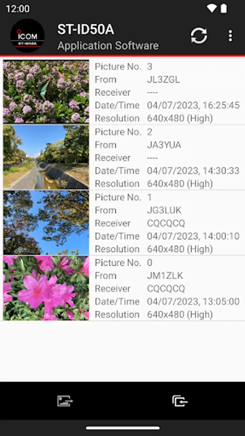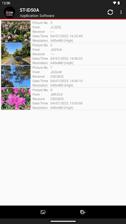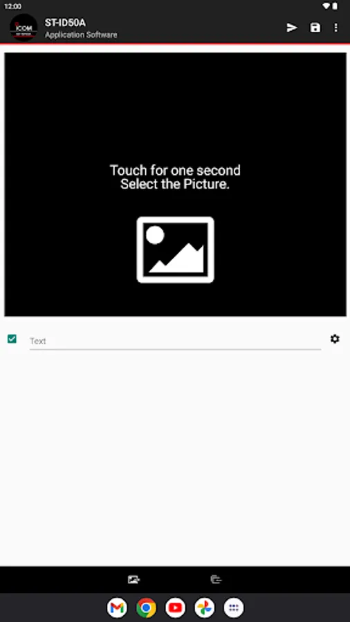 “ST-ID50A” is an application that connects an Android device and an ID-50 with a USB cable to send the TX Pictures of the Share Picture function to the radio and to read the received RX Picture History by radio to view the pictures.