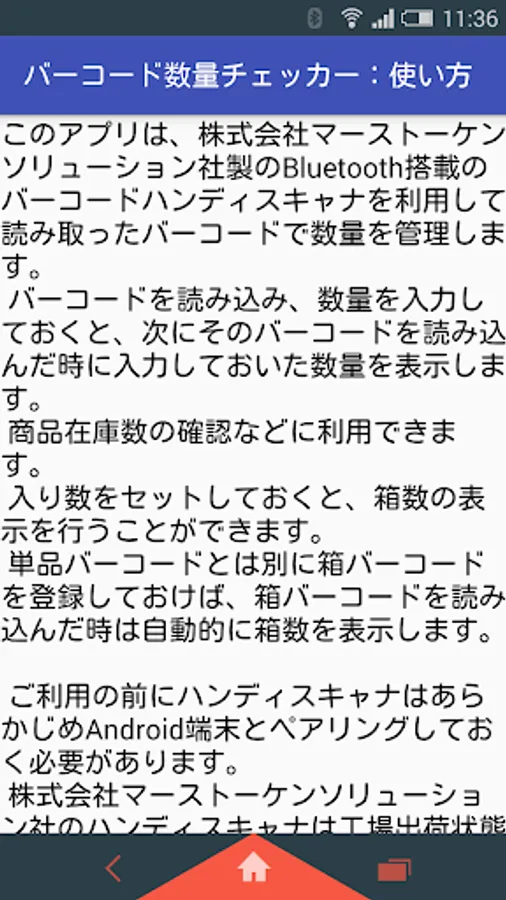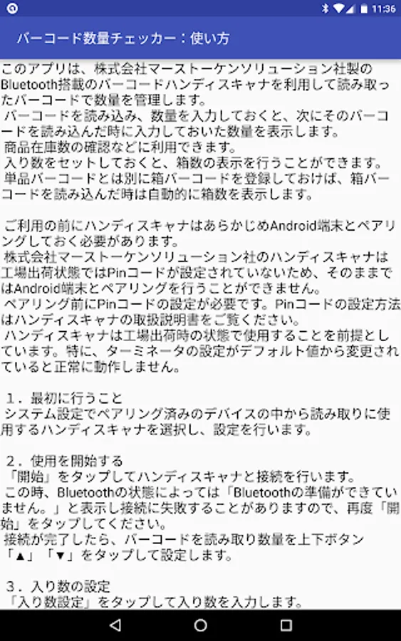 This app, to manage the quantity in the bar code read by using a bar code handy scanner of Bluetooth-enabled Ltd. Mars Token solutions manufactured.