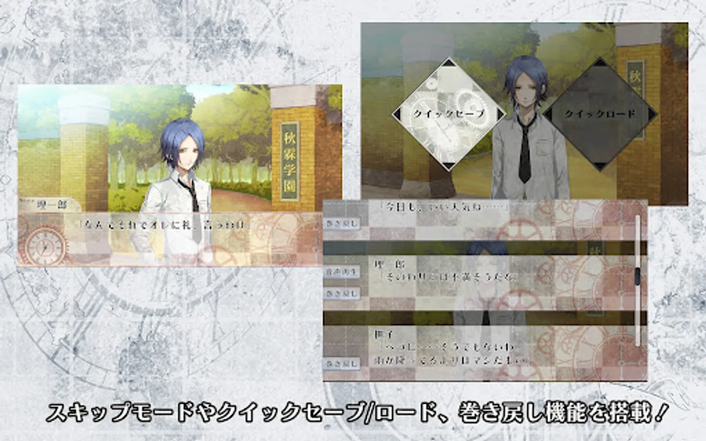 Equipped with a system that allows you to play comfortably, such as quick save/load, read/unread skip, auto mode, backlog, and rewind.
