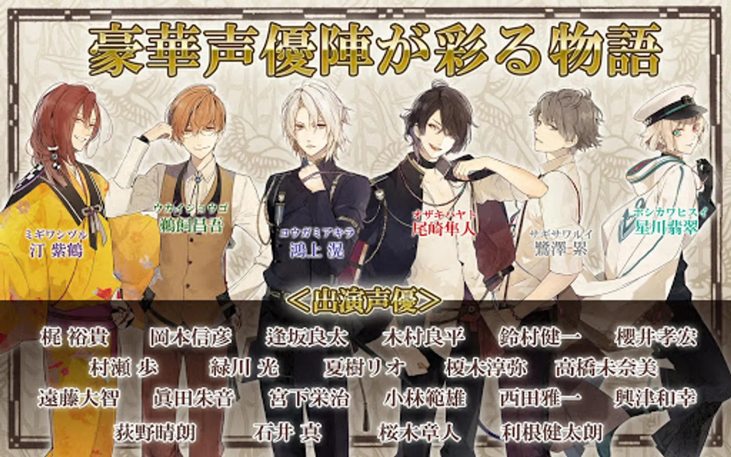 Shogo Ukai (CV: Ryohei Kimura) / Shikaku Tei (CV: Kenichi Suzumura) / Kasane Sagisawa (CV: Takahiro Sakurai) and others