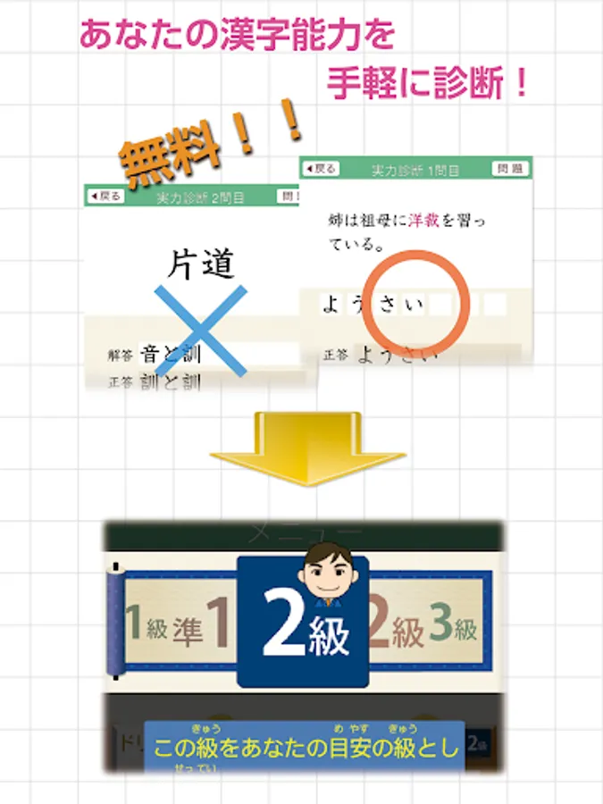 Diagnose your kanji ability with the free ability diagnosis function!