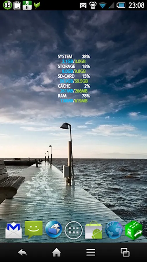 Storage, SD card, a widget utilization, free space, total capacity is known, such as RAM.