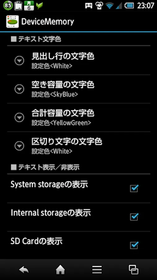 And setting screen from the text color, display of text / non-display, you can change the update interval (in seconds).