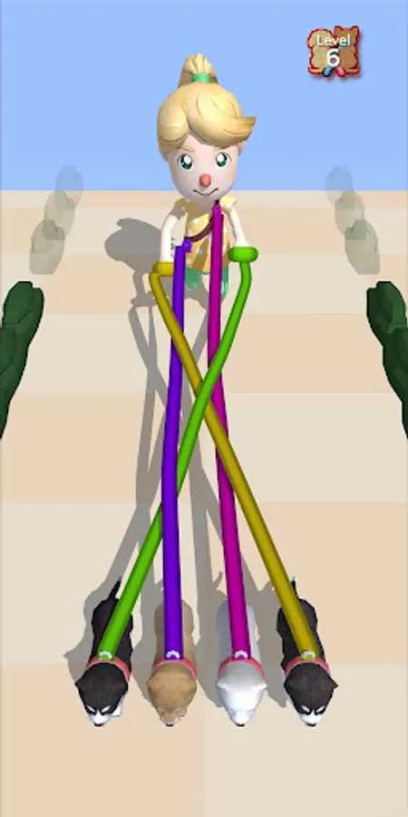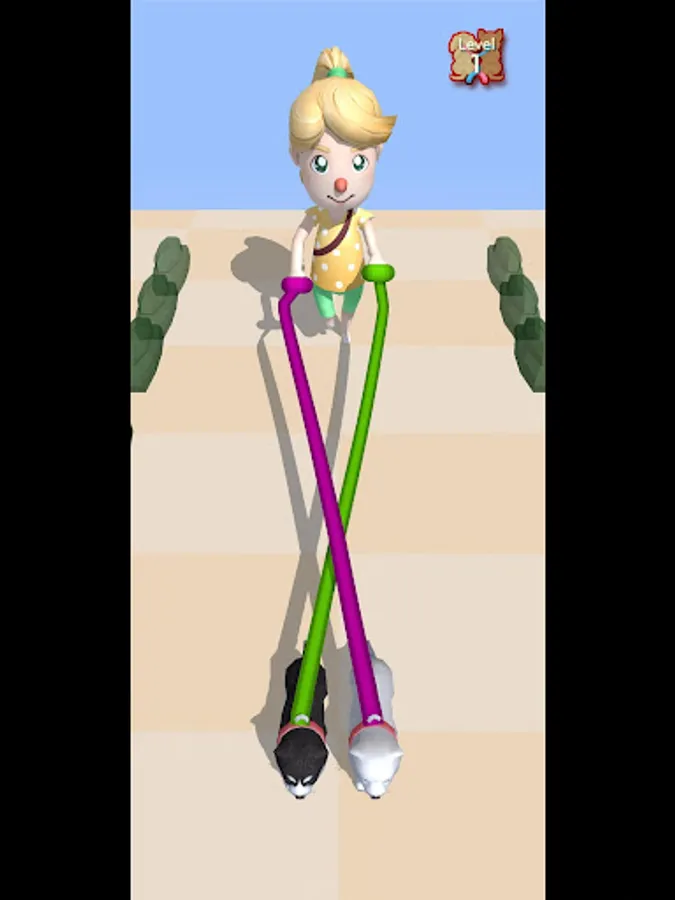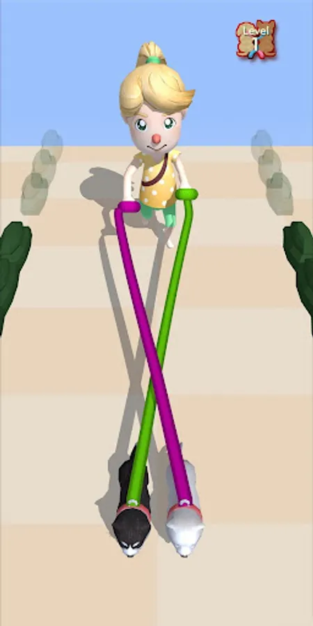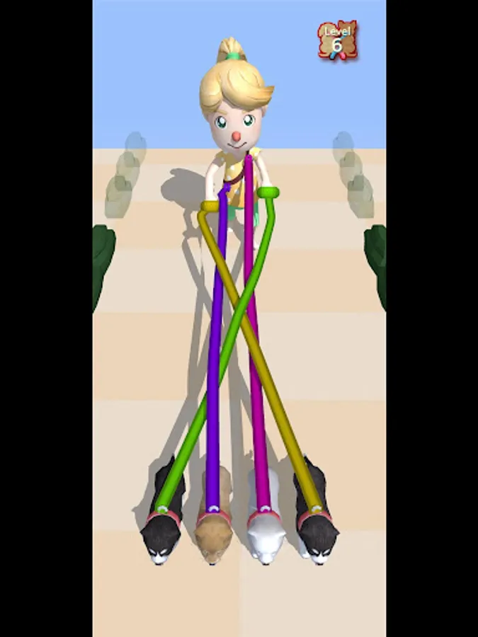 It is a brain training puzzle game in which you can move a dog's lead that is entangled while walking a dog and untie it.
