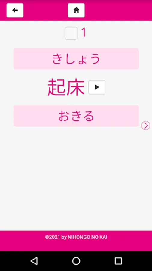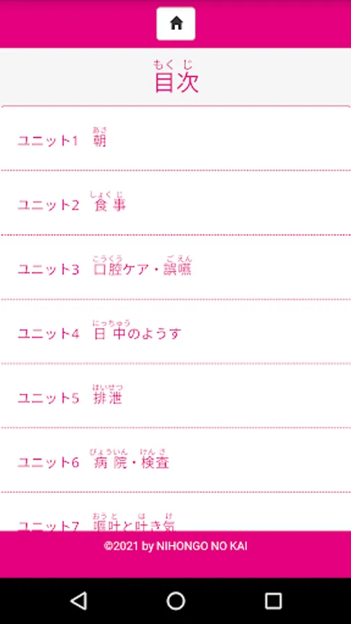 You can memorize the kana readings given above and below the kanji words of each unit. You can also confirm the pronunciation by pressing the audio button.