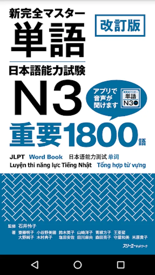 With this App, you can hear all the headwords and reading passages found in the textbook “改訂版 新完全マスター単語 日本語能力試験N3 重要1800語”.