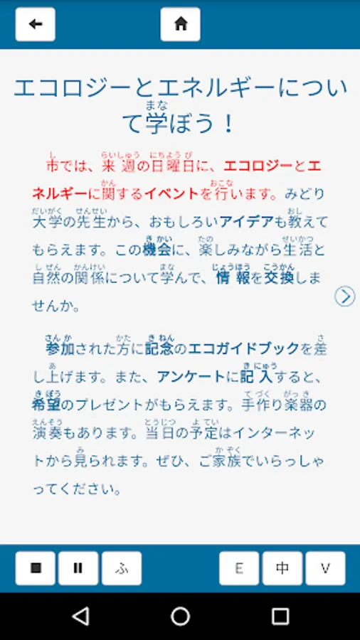 ・“ふりがな ON/OFF” … Turn on or off the phonetic readings of the kanji.