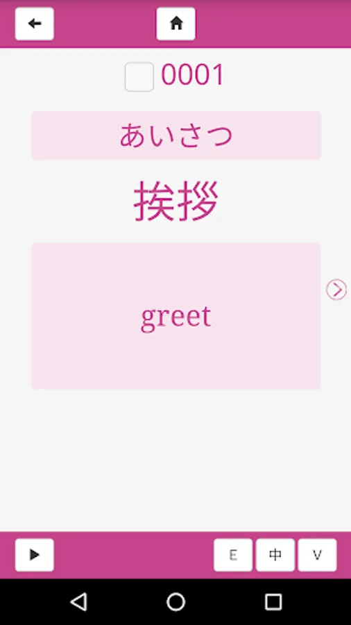 You can memorize the 1,000 words according to their part of speech or category. You can confirm the pronunciation with the recording. Above the words to be learnt is a box. Tick this box to indicate you have learnt the word.