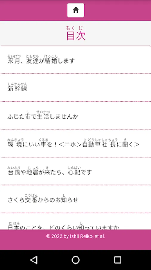 読み物が18篇あります。音声を聞きながら、文を読むことができます。