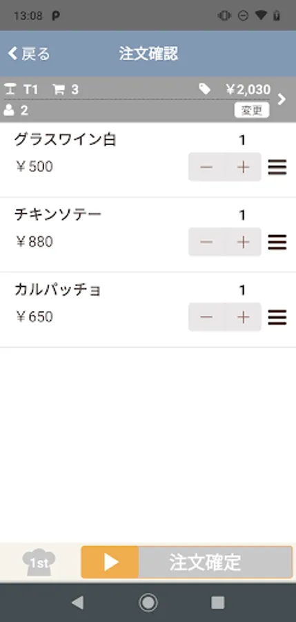 お客様から頂いた注文を入力し、キッチンにオーダー伝票を印刷します。