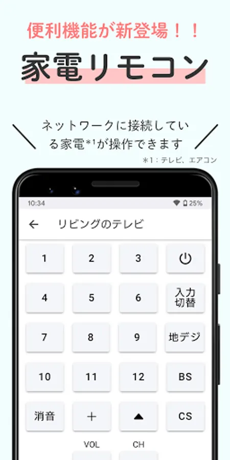 "Remote control function" for TVs (some models made by Panasonic, Sharp, Toshiba, and Sony) and air conditioners (models compatible with the ECHONET Lite standard) that are connected to the same home network as the home appliance notebook. You can use (* 1). This feature is provided by us and is not supported by manufacturers. For inquiries about this function and how to operate it on the app side, please contact us directly.