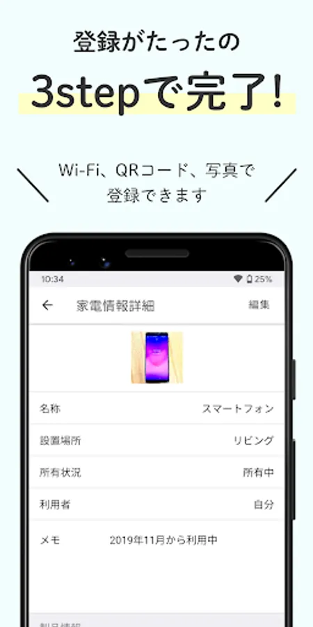 You can use 3 types of registration: batch registration of home appliances connected to Wi-Fi, label registration that AI automatically determines just by taking a label, and registration using a QR code.