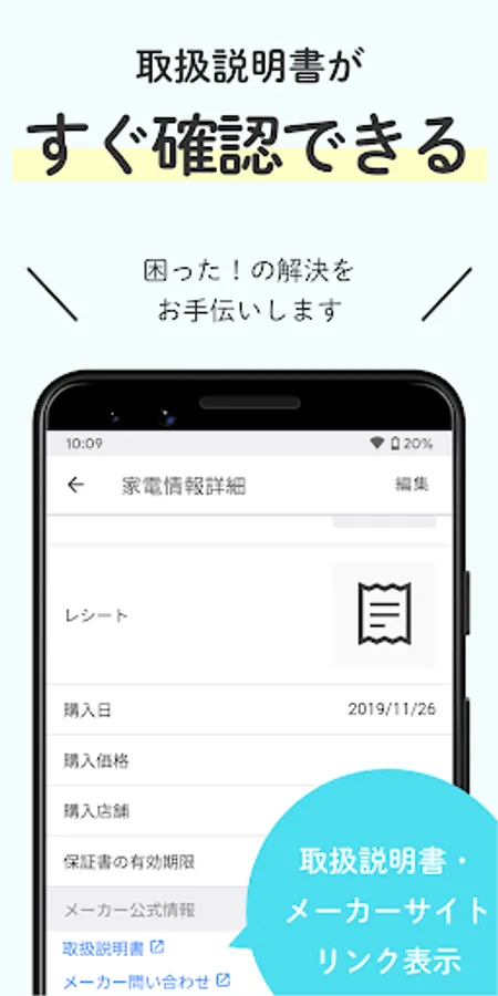 You can directly access the instruction manuals and contact information for registered home appliances.