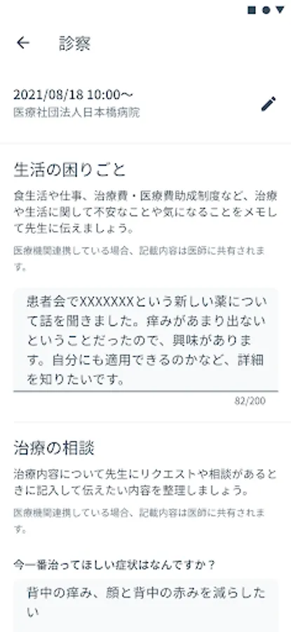 If the hospital or clinic you visit uses "GPP Hiroba", you can have the doctor see the symptoms and consultation notes recorded with the app as they are.